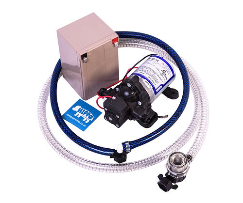 An 8 litre per minute hot water boiler, on custom built trolley. There's no need to have a more powerful shower as this one is plenty, as it's designed to work! Includes 25litre water tank, pump, rechargeable 12v powerpack and all hoses needed to use it as a standalone unit, or from a mains tap.
